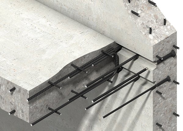 Ancon KSN Anchors, in combination with Bartec Plus parallel-threaded reinforcing bars, simplify concrete construction joints. Together, they allow engineers to design slab-to-wall connections without the restrictions on bar length and bar diameter of re-bend continuity systems or the awkward anchorage lengths demanded by reinforcing bar couplers.