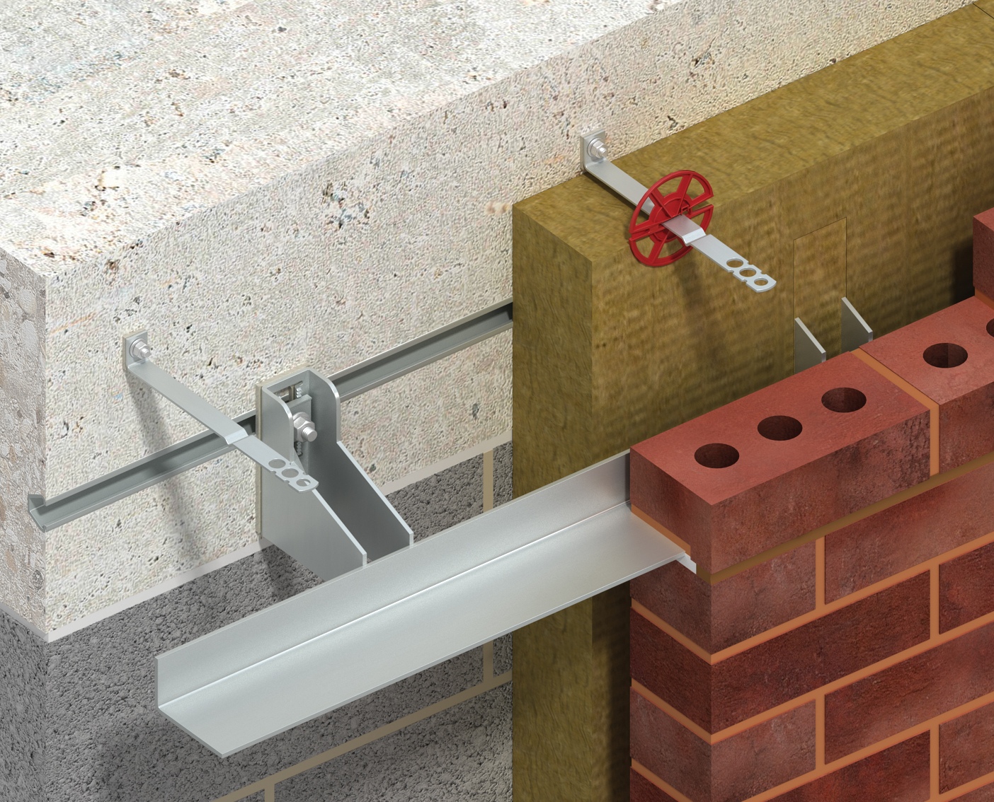 Brick, block or stone cladding on steel or concrete framed structures is normally supported by stainless steel masonry support systems.