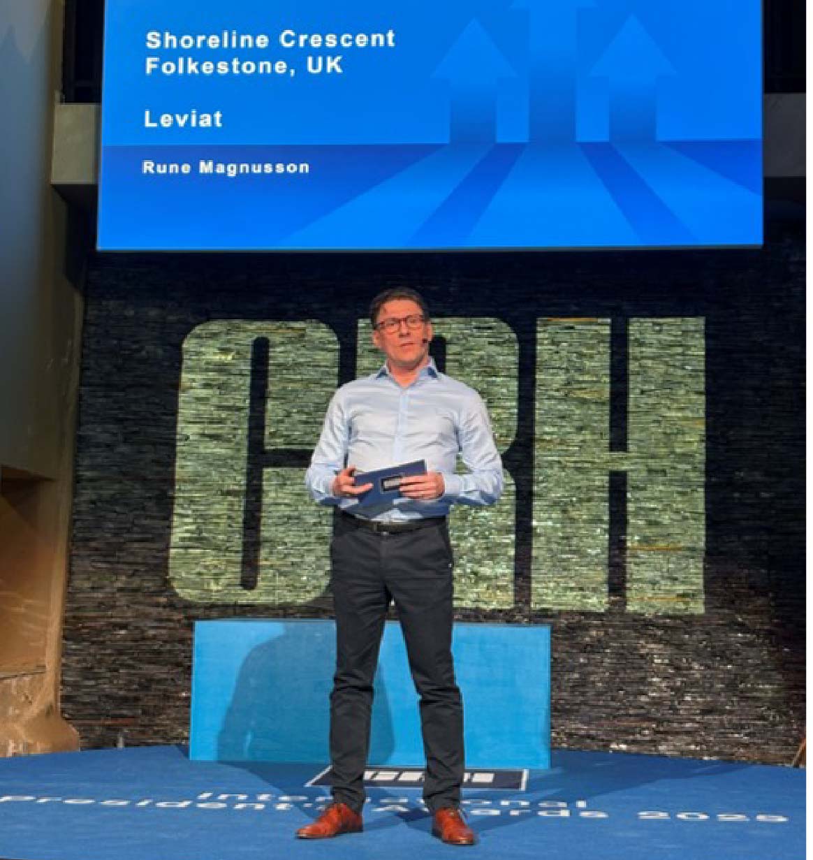 Leviat is proud to share that its team in the UK has been awarded the prestigious CRH International President’s Award in recognition of its innovative contribution to the Shoreline project in Folkestone, United Kingdom.