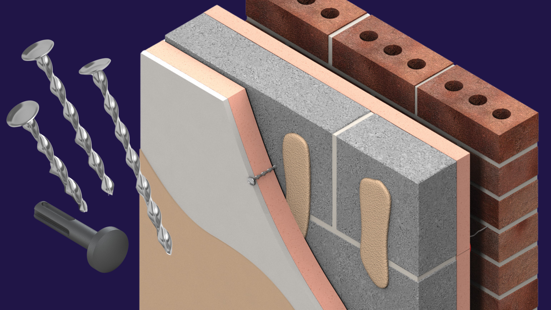 1.Warm Roof Nails | 2. Cavity Wall Ties | 3. Wall Starter Systems | 4. Insulated Plasterboard Fixings | 5. Timber Frame Ties